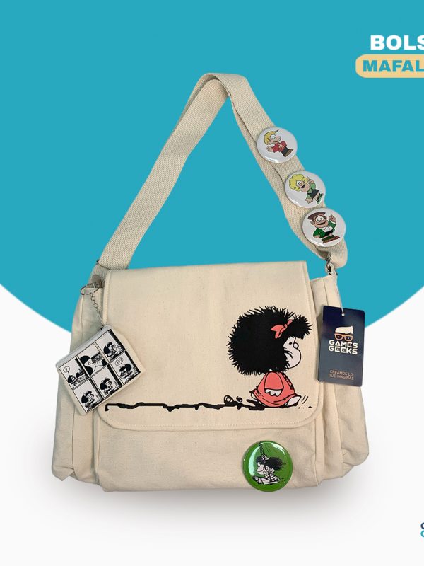 Bolso Mafalda en lona prelavada con 5 bolsillos, m